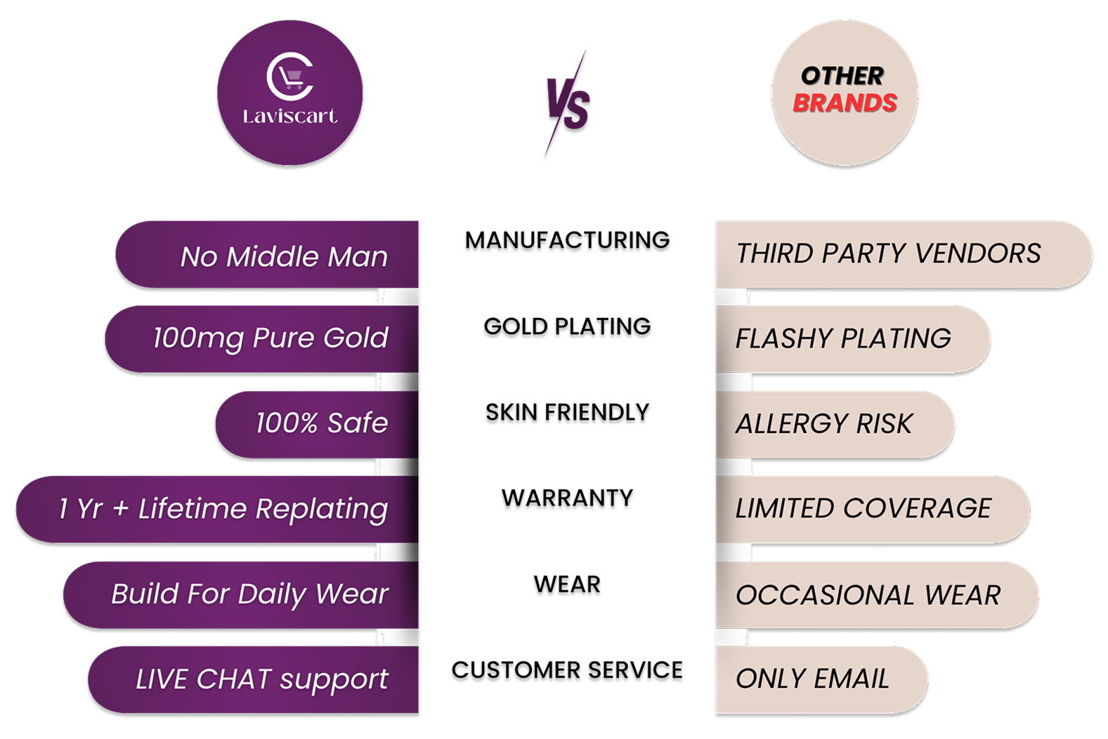 Many other brands may claim to offer 1-year warranty and high quality, but in reality, their products often fade or lose shine within a week. On top of that, their customer support is usually slow or unresponsive.