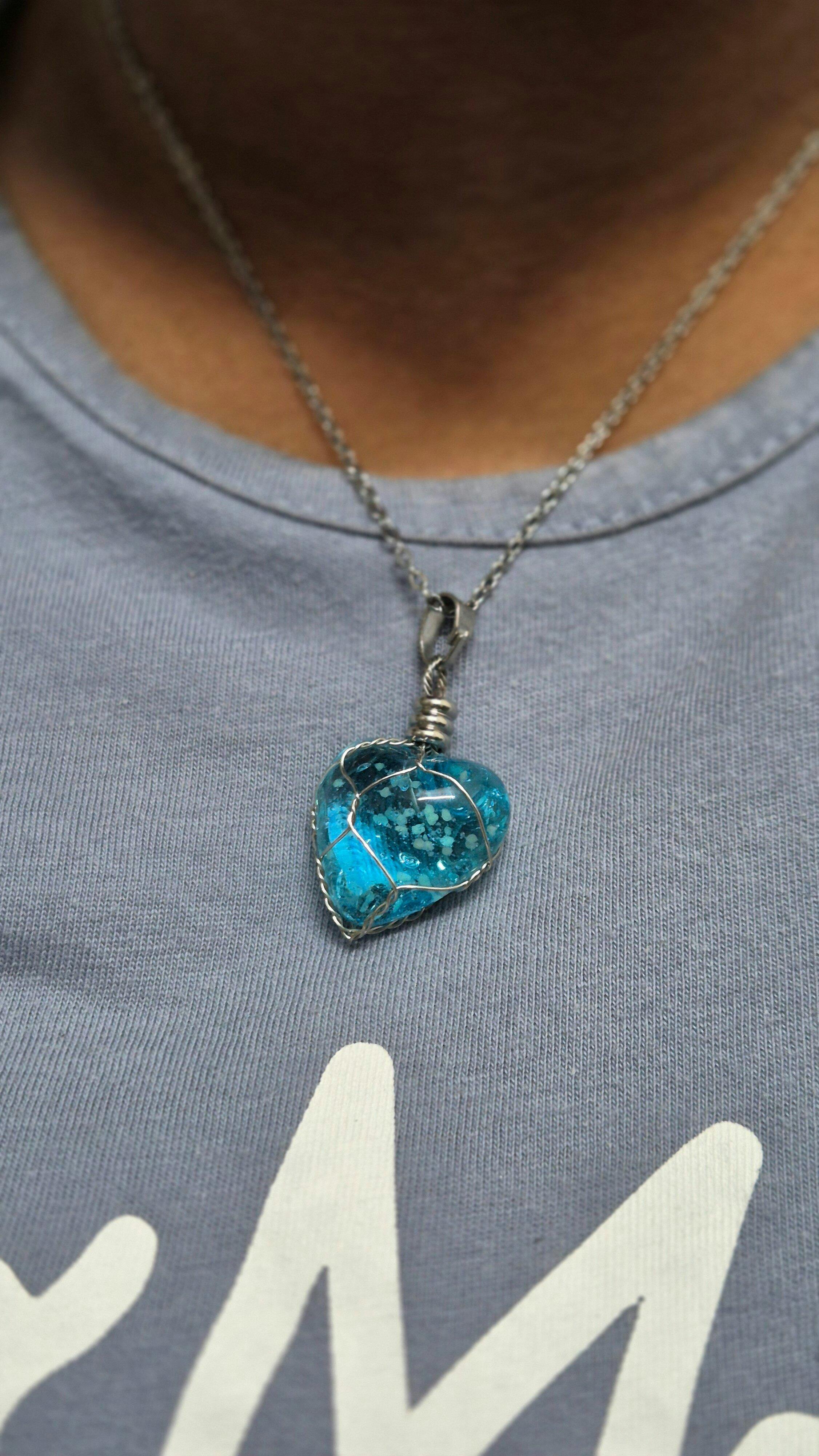 The necklace glows in a magical mix of blue and green – like moonlight and ocean waves combined 🌙🌊 Perfect for night outs, dates, or even a solo vibe sesh!
