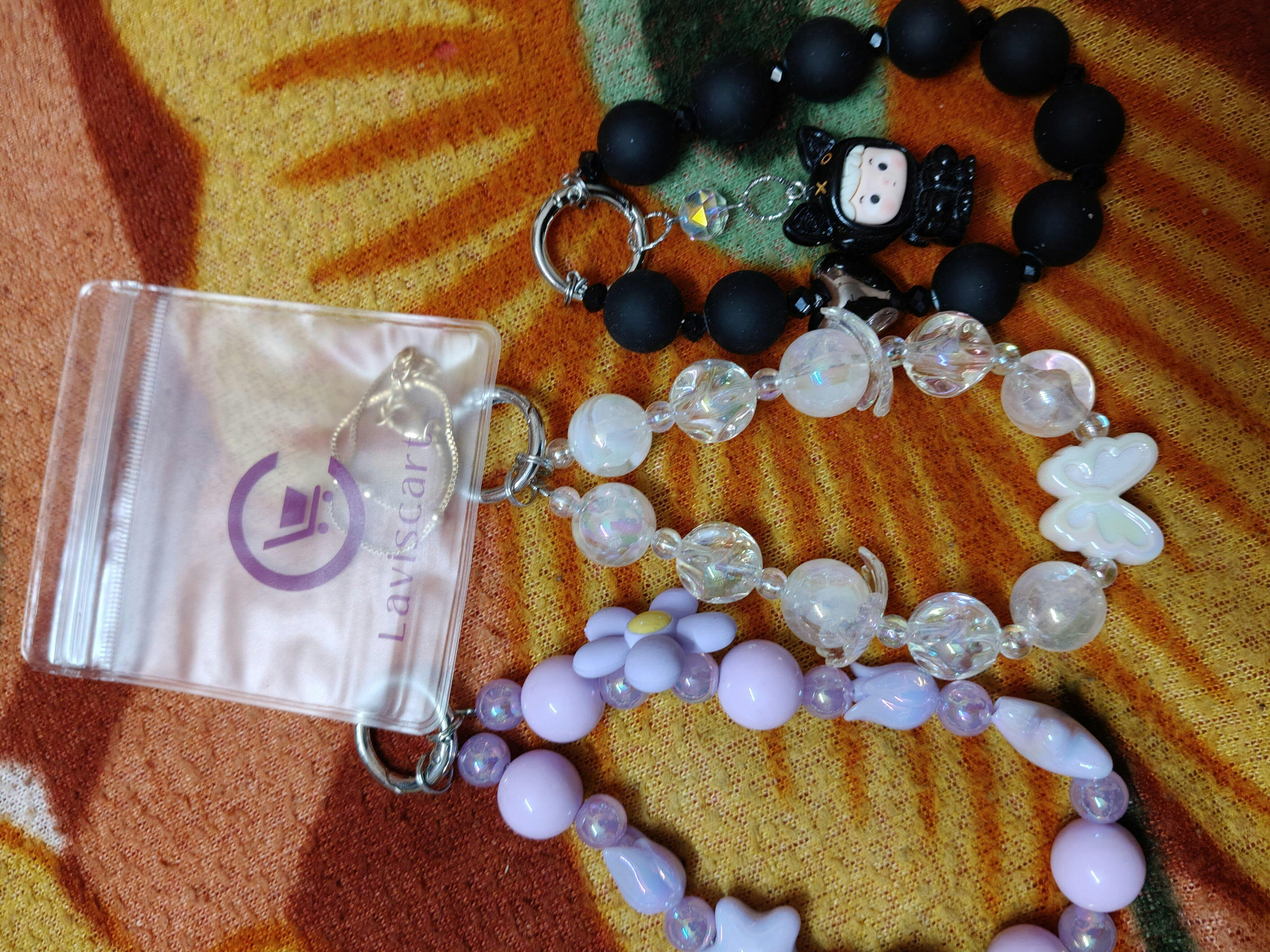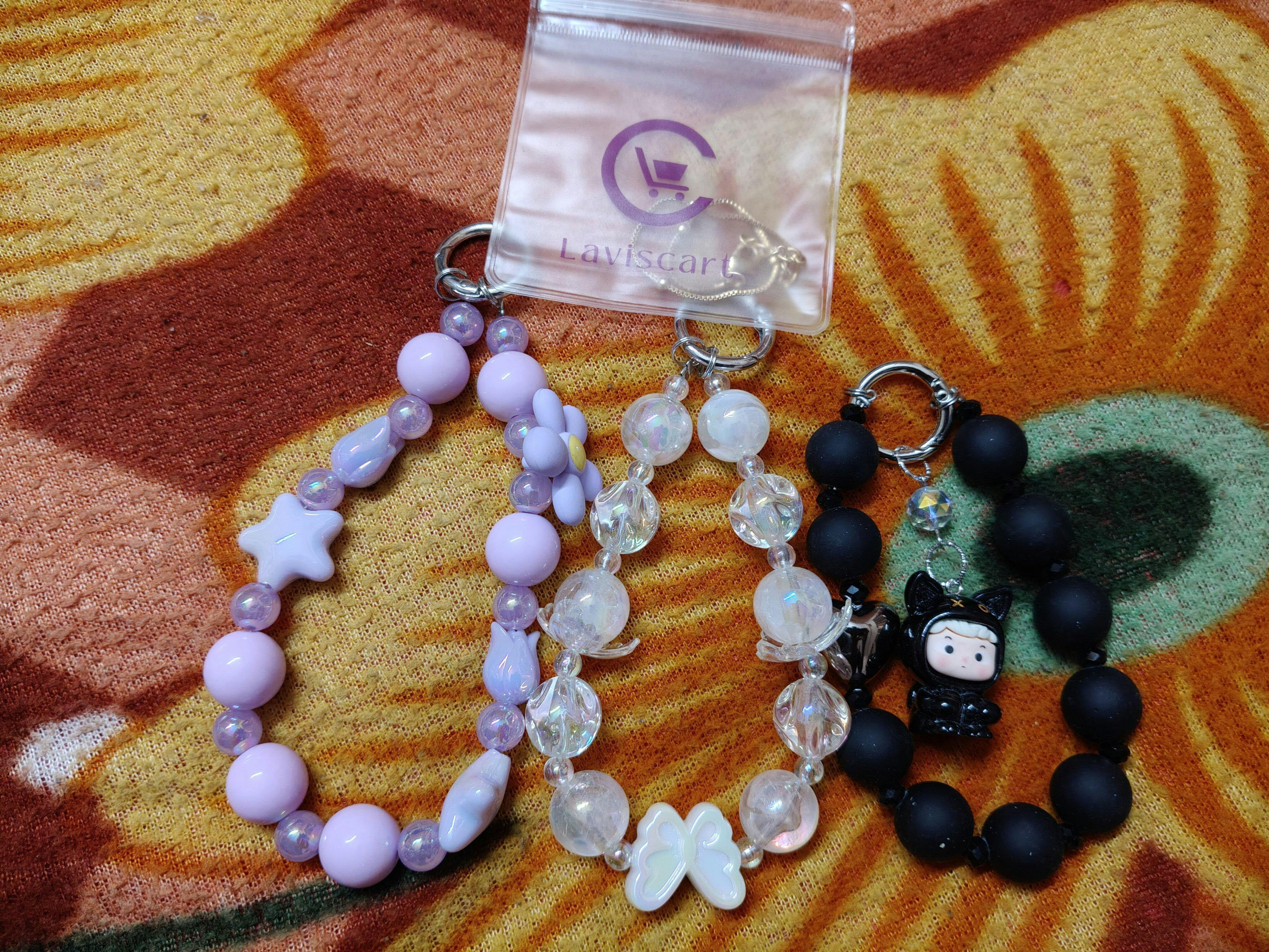 Black mobile charm designed with premium beads and a durable cord.