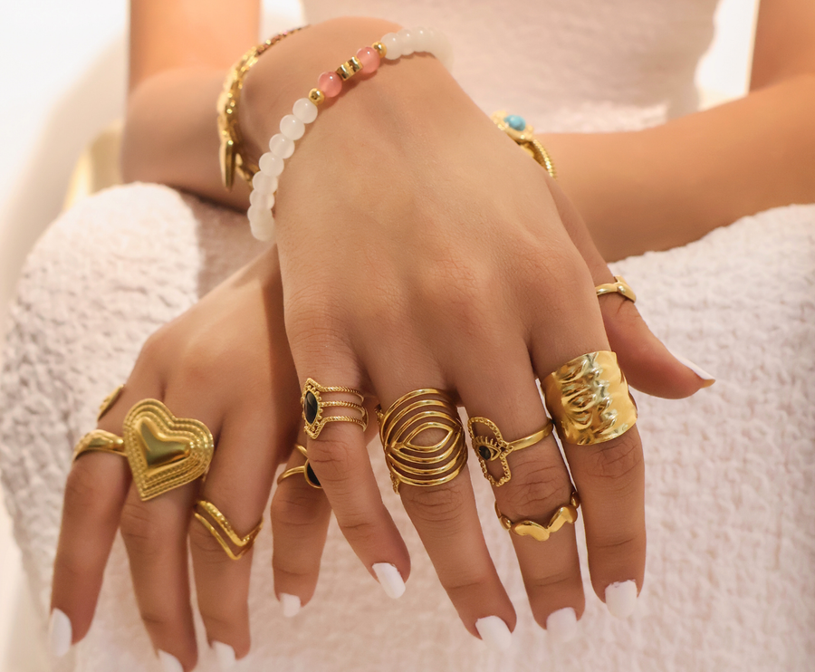 adjustable ring crafted with a premium polished finish. Flexible open-band design that comfortably fits most finger sizes. Elegant detailing with a balanced height ()