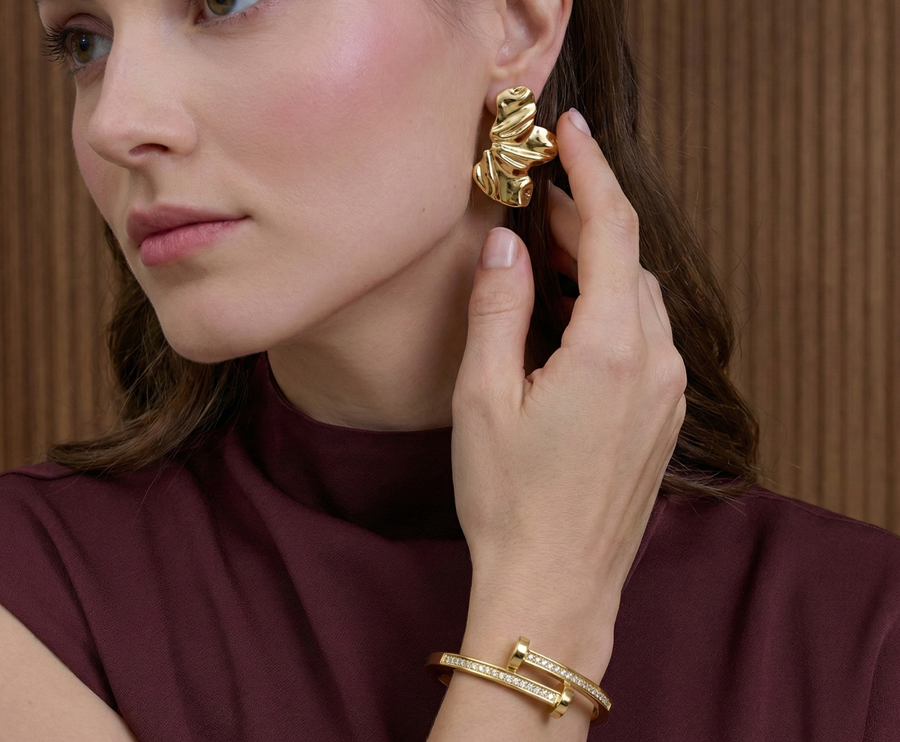 Gold Earrings crafted with premium stainless steel and a polished 18K finish.