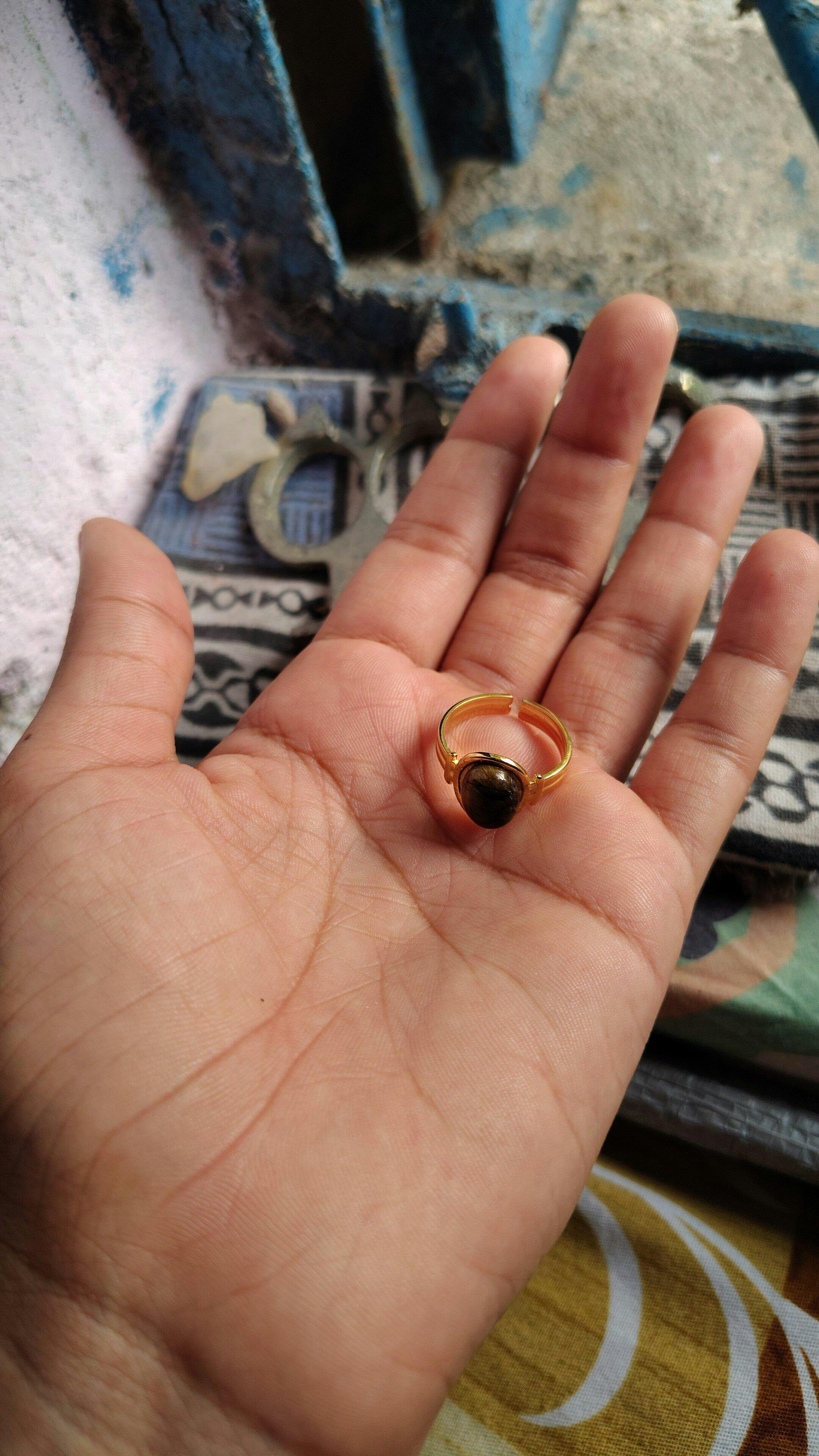 Crafted from durable stainless steel and finished with a brilliant 18k gold plating, this ring is built to last and maintain its radiant shine. The beautiful brown stone and polished gold work together to create a luxurious and harmonious accessory.